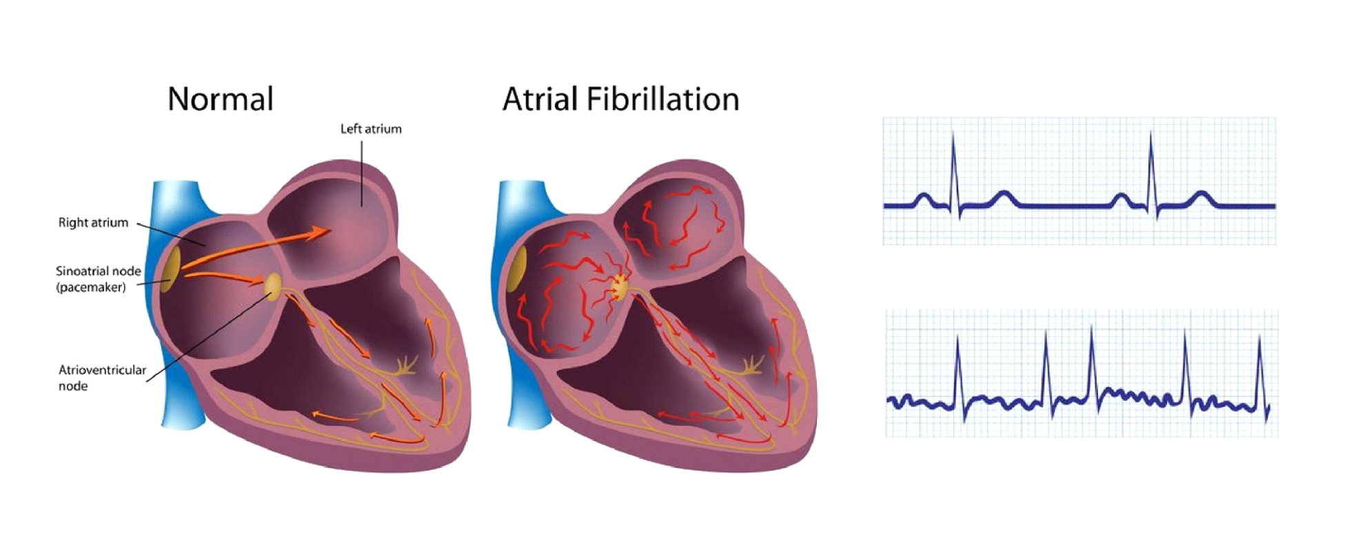 Melansir dari Mayo Clinic, fibrilasi atrium (AF) terjadi akibat adanya gangguan hantaran sinyal listrik di otot jantung. Akibatnya, denyut jantung menjadi tidak normal sehingga tidak memompa darah dengan optimal ke seluruh tubuh.